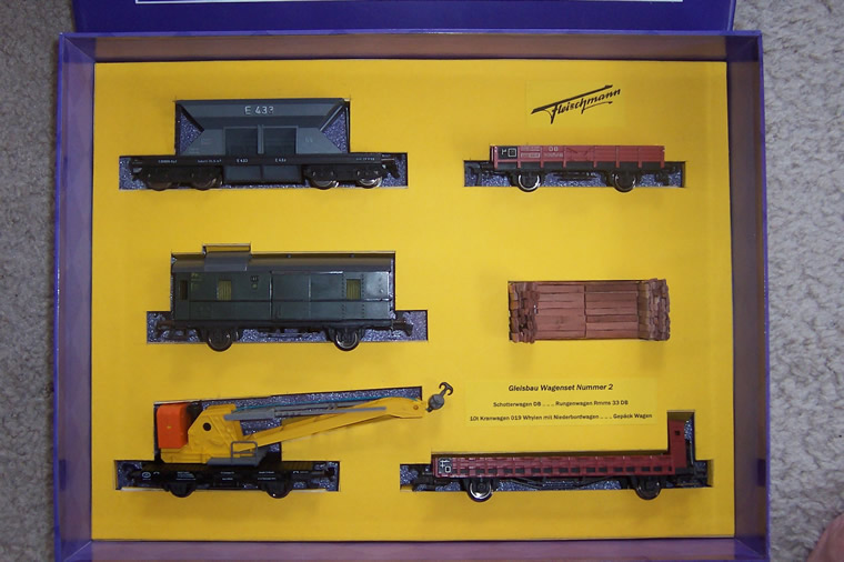 Examples of unique sets, made up of Fleischmann die-cast underframe rolling stock.