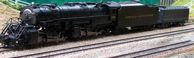 This model shows the Y6b in ex-works or newly overhauled condition, as it may have appeared in the period 1953-58. The paintwork is unspoiled, unlike the auxiliary tender at back, which carries extra water for the gargantuan needs of this machine. #2175 incorporates the sheathed, or lagged/jacketed smokebox. The smokebox door still carries the classic graphited finish, which was used on the smokebox of those engines which were unsheathed. This graphite was often polished till it shone like a 2 bob watch. The Rivarossi model represents the engine with no sheath on the smokebox.