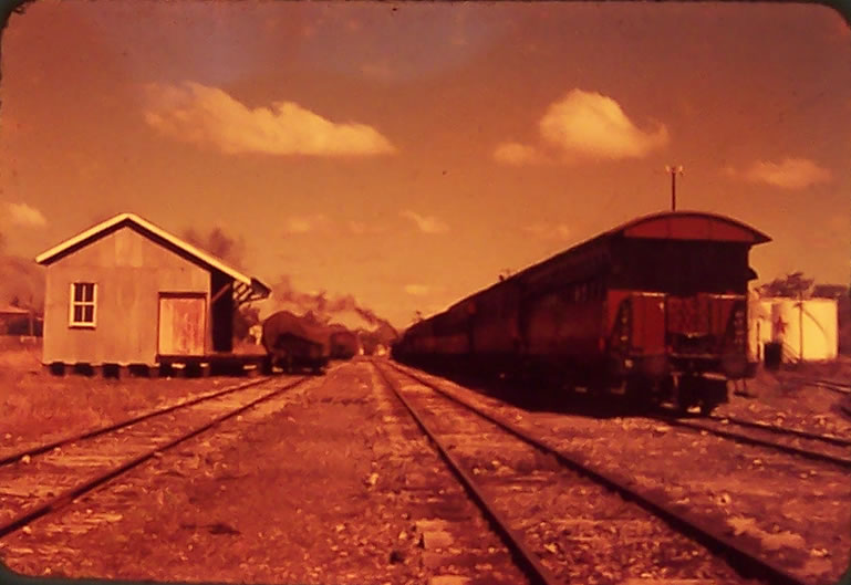 Urangan, at the southern extent of Hervey Bay, was a reasonably important port for the export of bagged raw sugar. The sugar was milled from sugar cane in Maryborough. This local mixed goods and passenger train from Maryborough, possibly on a weekend, was photographed around 1965, by Ivor Thurlow. The line ran in a northerly direction here, straight on to the Urangan pier, which was about 1km long, and received shipping from all over the world.